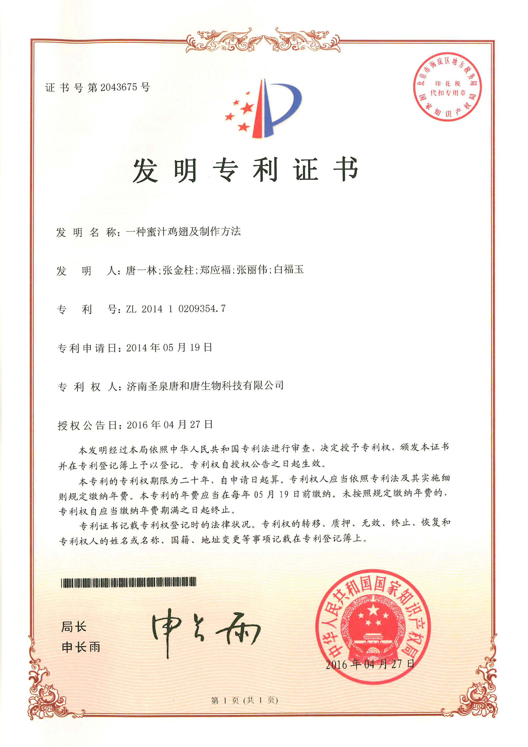 荣获国家技术创新示范企业荣誉称号。