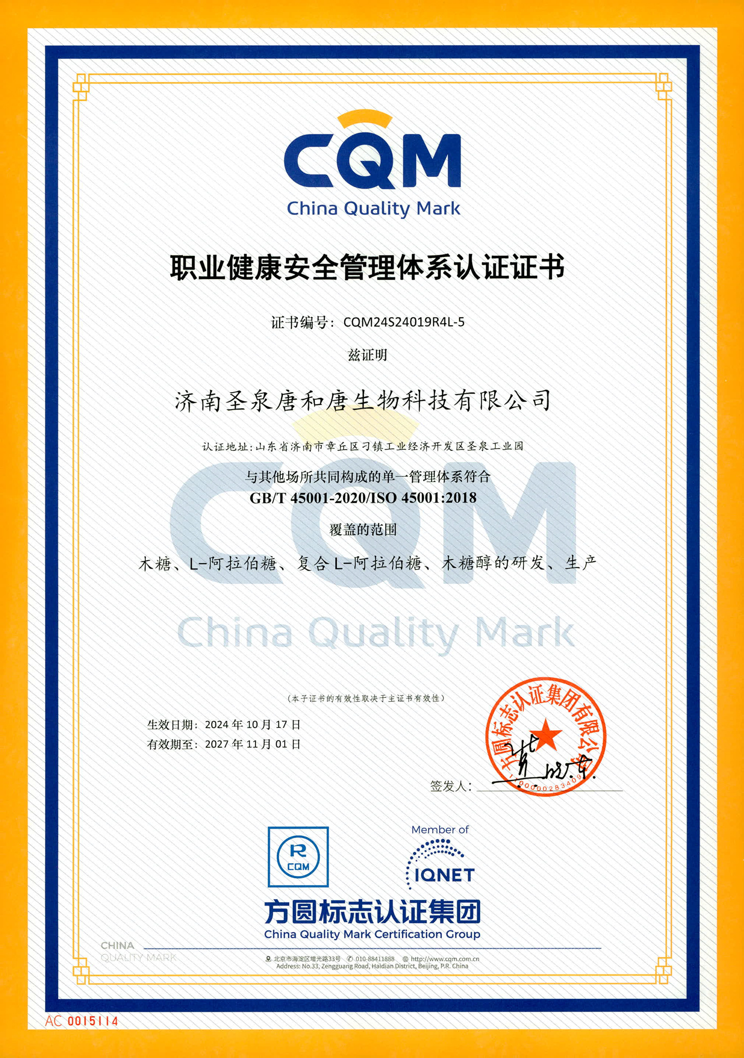 济南圣泉唐和唐生物科技有限公司成立于2008年,致力于以秸秆中的半纤维素为原料开展功能糖及其衍生物的研发、生产、应用和销售,成为全球主要的精制级D-木糖、木糖醇和L-阿拉伯糖生产基地,旗下产品先后获得碳足迹认证、非转基因认证、植物基认证、低GI认证等多项认证,产品广泛应用于食品、日化、医药和合成化工等领域。公司与中科院等合作建立“糖化学及生物工程技术研发中心”,同时成立山东省糖科学研究院,建有10万级洁净车间,唐和唐系列产品被选为上海世博会中国馆永久展品,获上海世博会特别嘉奖,当选山东知名品牌。