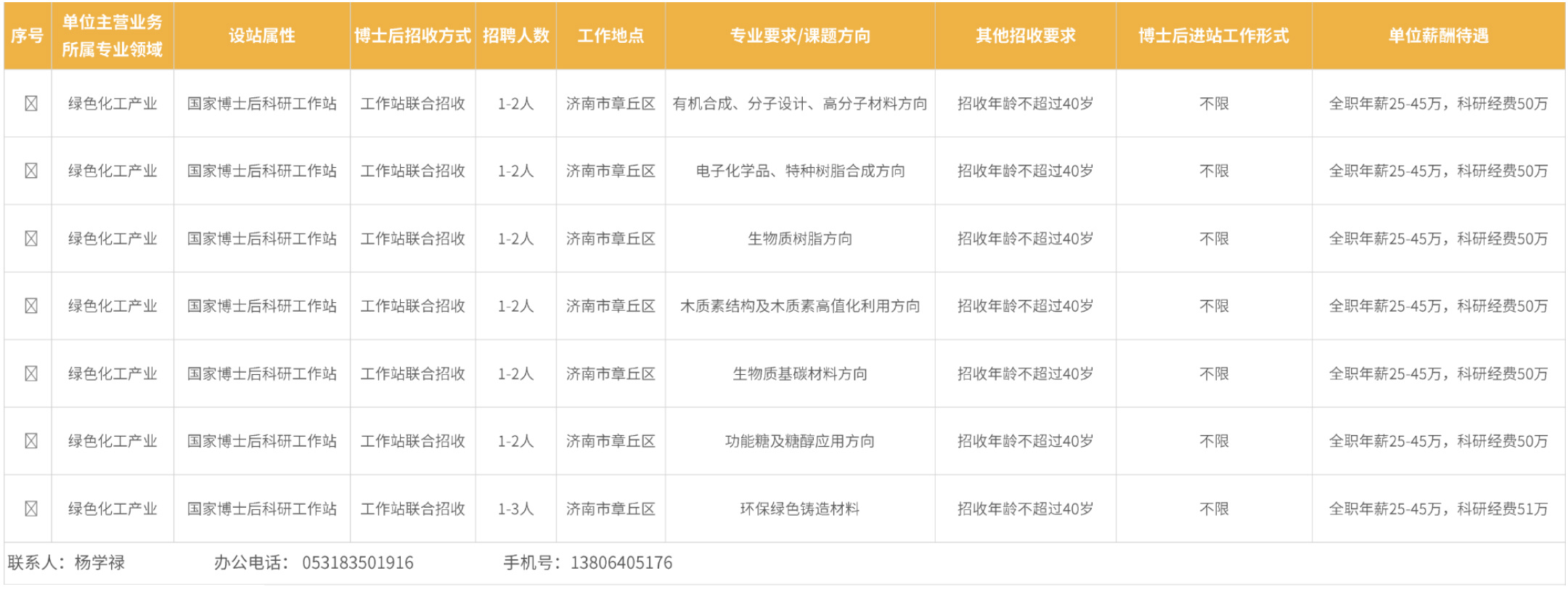 2024年度圣泉集团国家级博士后科研工作站博士后岗位招聘需求信息表